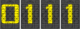 A Geascript 7+ szegmenses karakter kifejezetten jól használható számok megjelenítésére. Alkalmas továbbá bizonyos különlege karakterek és nyomtatott nagybetűk megjelenítésére is. Az íráskép nagy távolságból is jól olvasható. |